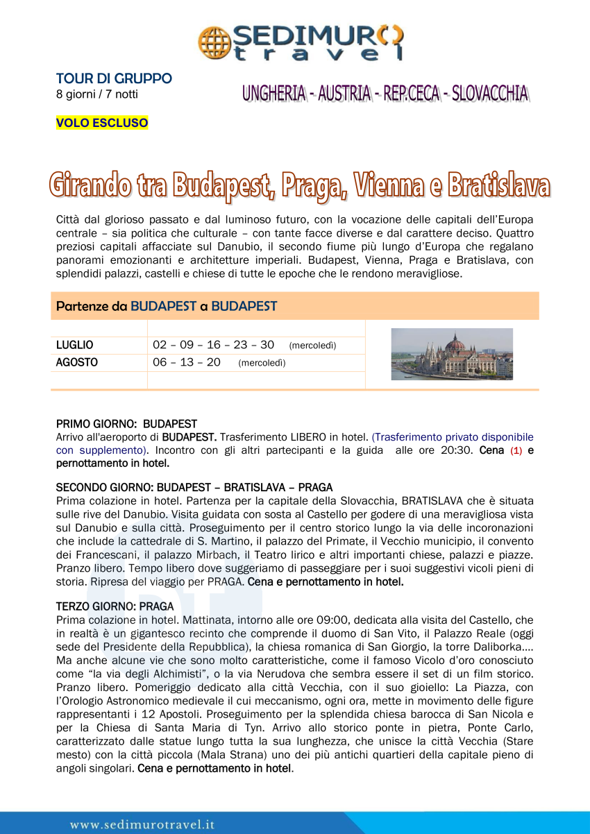 Girando tra Budapest, Praga, Vienna e Bratislava da Budapest 8 giorni