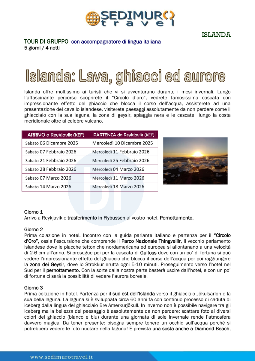 Islanda, lava ghiacci ed aurore da Reykjavik 5 giorni
